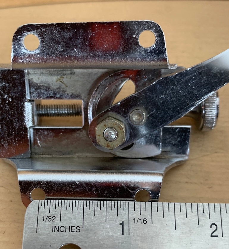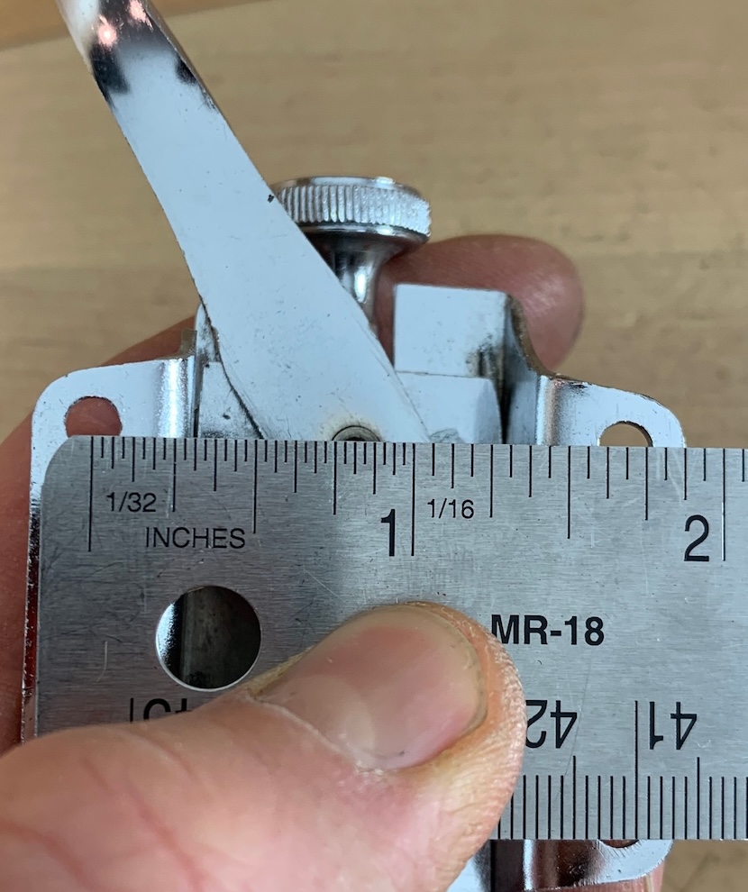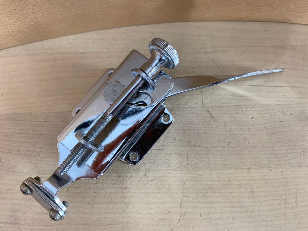 Strainers and Butt Plates Photos of the center-to-center measurements of classic snare drum strainers/throwoffs.Jump to section:CamcoDuplexFujiGeorge WayGretschHoshino KougyouJohn GreyKentLeedyLudwigLynehanPearlPremierRogersSlingerlandSonorTamaWalberg & AugeWFLWilsonYamaha Camco Camco butt plate, 1960s-70s 2 5/16" Duplex Duplex butt plate, 1910s-30s 11/16" Duplex snare drum strainer, 1910s 1/2" - this is the earliest version of this part, with the smallest footprint. Duplex strainer, 1920s - vertical version 1 1/2" Duplex strainer, late 1920-30s - horizontal version 1 1/4" Fuji Fuji adjustable butt plate/strainer, 1960s. The opposing throw off parts shared the same footprint. 1-1/16" George Way George Way marching snare butt plate, 1950s 2-5/16" George Way Aristocrat strainer, 1950s (shown here incomplete) There were several versions of this part between the Way and Camco years. This one is approximately 1-3/16". Gracy Gracy snare drum strainer, 1960s 2 1/8" 1 15/16" Gracy strainer, late 1960s-70s (shown with replacement lever arm) 1 9/16" Gracy 60s strainer and butt plate assembly, made in Japan 1 7/16" Gretsch Gretsch hoop-mounted snare drum strainer, 1900s-10s. These were found on some other brands as well, the manufacturer is uncertain. 1 13/16" Gretsch Feather Touch strainer, 1947-50 and Renown strainer and butt plate, 1950-2001 (Click for downloadable stencil) Gretsch 2-point butt plate, probably 1930s-60s 2 1/4" Gretsch G5379 Lightning "Fish Tail" butt plate 1 3/8" Hoshino Kougyou (Hoshino K) Hoshino Kougyou hockey puck strainer, late 1960s-early 70s 4cm John Grey John Grey Broadway strainer, 1960s 15/16" Kent Kent strainer, 1950s 1 1/4" Kent butt plate, 1950s-early 60s 3 1/4" Leedy Leedy Utility strainer, 1911-late 40s 1 5/8" Leedy butt plate, 1910s-30s 1 13/16" Leedy Marvel parallel strainer, 1924-25 1 3/8" (both throwoff and butt ends) Leedy Muffler/Presto strainer, 1928-42. The 4-point Speedway model shared the same base part, 1930-35 (Click for downloadable PDF stencil) leedy parade strainer, 1930s-40s 2 7/16" Leedy parade snare butt plate, 1930s-40s 2 1/2" Leedy Slingerland era 1673 Rapid strainer, late 1950s-60s 2 9/16" Ludwig Ludwig butt plate, 1910s-30s. These appeared on some other brands as well, and may have been manufactured by another company. 1 7/16" Ludwig Tango hoop-mounted strainer, 1910s-30s 3/4" Ludwig & Ludwig butt plate, 1920s-50s 1 7/8" Ludwig & Ludwig P338 Strainer, 1918-40s 1 9/16" Ludwig Military parade drum strainer, 1930s-60s 2 7/16" Ludwig wire extender bracket, 1930s-40s 15/16" or perhaps 29/32" Ludwig/Leedy & Ludwig P84 strainer, 1951-60s 7/8" Ludwig P87 Super Classic strainer, 1969- 1 3/8" Ludwig P85 strainer, 1970s-00s 2.5" Ludwig P32 butt plate, 1950s-00s 2 3/16" Ludwig piccolo strainer, 1990s-00s 3/4" Ludwig P80 strainer, 1990s-00s 1" Lynehan The Lynehan strainer, 1909-10s. Used on numerous small brands, this part may have been the company's only offering. 1 1/2" across a wire cutout on a wood hoop 1/2" Pearl Pearl snare strainer 1960s-70s 1 3/4" A similar Pearl strainer, 1960s-70s. A few different adjustment knob styles were used. 1 11/16" Pearl basic butt plate, 1960s-early 70s 2 3/8" Pearl D4514 adjustable butt plate, late 1960s-70s - another version with an adjustment thumb knob shared the same footprint. 1 1/16" Pearl strainer, 1970s-80s 1 7/16" Pearl SR010 strainer (the accompanying adjustable butt plate shares the same footprint), 1980s-90s 1 11/16" Pearl S-014 strainer, 1980s 2 11/16" Pearl S012 strainer, late 80s-early 90s 1-11/16" 1" Pearl SR014N strainer, 1990s- 2 11/16" - some versions of this part have other hole spacings. Premier Premier butt plate, 1960s-70s 1 7/8" Olympic strainer, 1960s 2 5/16" Premier Hi Fi Strainer, 1960s-70s 2 13/16" Premier snare drum butt plate, 1960s-70s 1" Premier 642 strainer, 1970s-2000s 2 13/16" Rogers Rogers "proto-Monitor" strainer, perhaps late 1940s-50s 1-5/8" 1-7/8" Rogers 4472 Orchestra/Universal/Monitor strainer, 1954-mid-60s 1-11/16" 1-3/16 Rogers butt plate, 1950s-60s. Many Japanese makers made very similar parts. 2 3/16" Rogers clockface strainer, early 1960s 1 1/4" Rogers Sta-Tite strainer, 1960s 1 3/16" Rogers Dynasonic strainer, 1960s-70s 1 1/4" Rogers butt plate, 1960s-80s 1 1/8" Slingerland Slingerland 967 "3-point" strainer, 1927-late 60s (Click for downloadable stencil) Slingerland 2-point snare drum butt plate, 1927-70s 1 15/16" Slingerland 673 parade snare strainer, 1930s-50s 2 9/16". This strainer became the Rapid throwoff and shares nearly the same footprint. Slingerland parade strainer butt plate, extra wide, 1950s-60s 2 5/8" Slingerland extended butt plate, originally a Leedy design 1 7/8" - frustratingly close to the basic 2-point butt plate shown above Slingerland Radio King wire extender, 2-hole version, 1950s 2 3/8" Slingerland Rapid strainer, 1950s-60s 2 9/16" Slingerland 982 Slapshot strainer, early to mid 1980s 2 7/16" Sonor Sonor "stopwatch" strainer, 1960s 1.5cm Sonor piccolo strainer, 1960s - shown with accompanying single-point butt plate 5/8" / 16mm Sonor adjustable butt plate, 1960s 12mm Sonor D-454 strainer, 1970s 4cm Tama Star/Hoshino Gakki 940 strainer, 1960s 7/8" on center; the adjustment rod hole was larger than the lower mounting screw hole. Star/Hoshino Gakki adjustable snare drum butt plate, late 1960s-70s 20mm Tama ImperialStar strainer, 1970s-mid 80s 2-11/16" Tama MasterCraft 4-point strainer, 1980s-90s 4cm 21mm Tama Mastercraft snare drum butt plate, 1980s 2 3/8" Tama snare roller extender bracket, 1980s 1-3/16" Tama tower strainer, used on many top shelf models, 1980s-mid 90s 1-7/8" 1-5/8" Tama logo strainer, 1980s 2-11/16" Walberg & Auge Walberg & Auge modular quick-change wires butt palte insert assembly, 1930s 1/2" Walberg & Auge strainer, 1930s-40s 7/8" WFL wfl P34 parade snare drum strainer, 1930s-50s 2 1/2" WFL P373 strainer, 1930s-40s 1 9/16" WFL Ray McKinley butt plate, 1940s 1-5/8" WFL "Strainer Throwoff", 1940s-50s. Sometimes called the Zephyr St